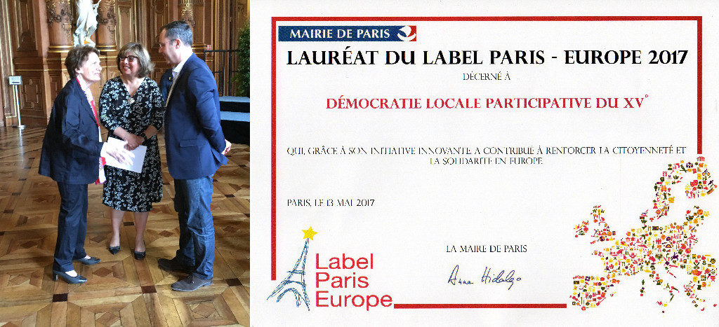 DLP15 ha ricevuto il « Label Parigi Europa » dalle mani di Catherine Lalumière (ex ministro e attuale presidente della Federazione francese delle Case dell’Europa) e di Hermano Sanches Ruivo (consigliere delegato presso l’assessore incaricato alle questioni internazionali, incaricato alle questioni relative all’Europa)